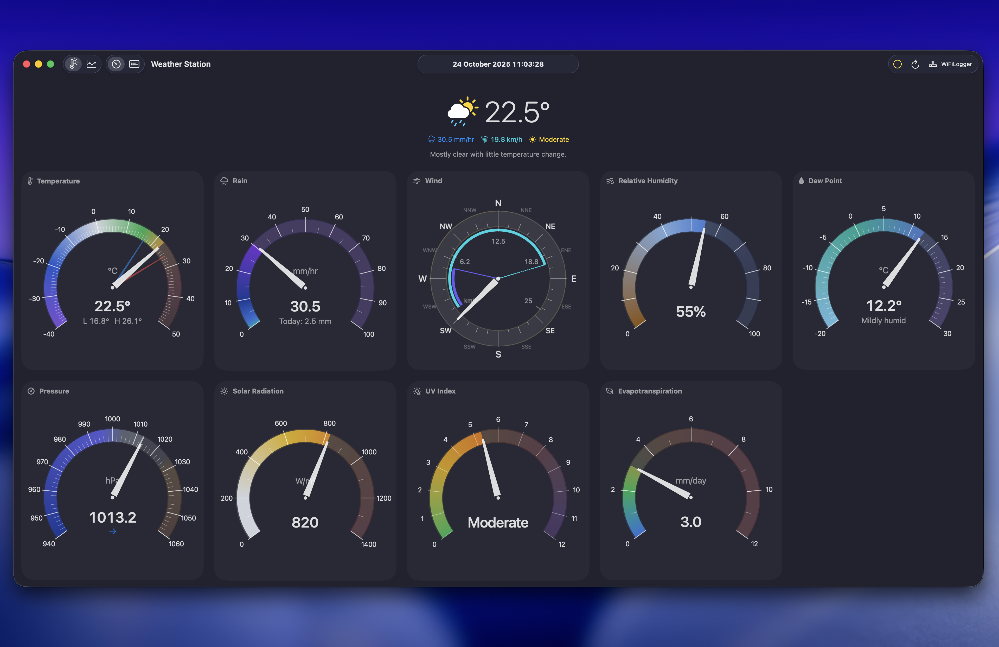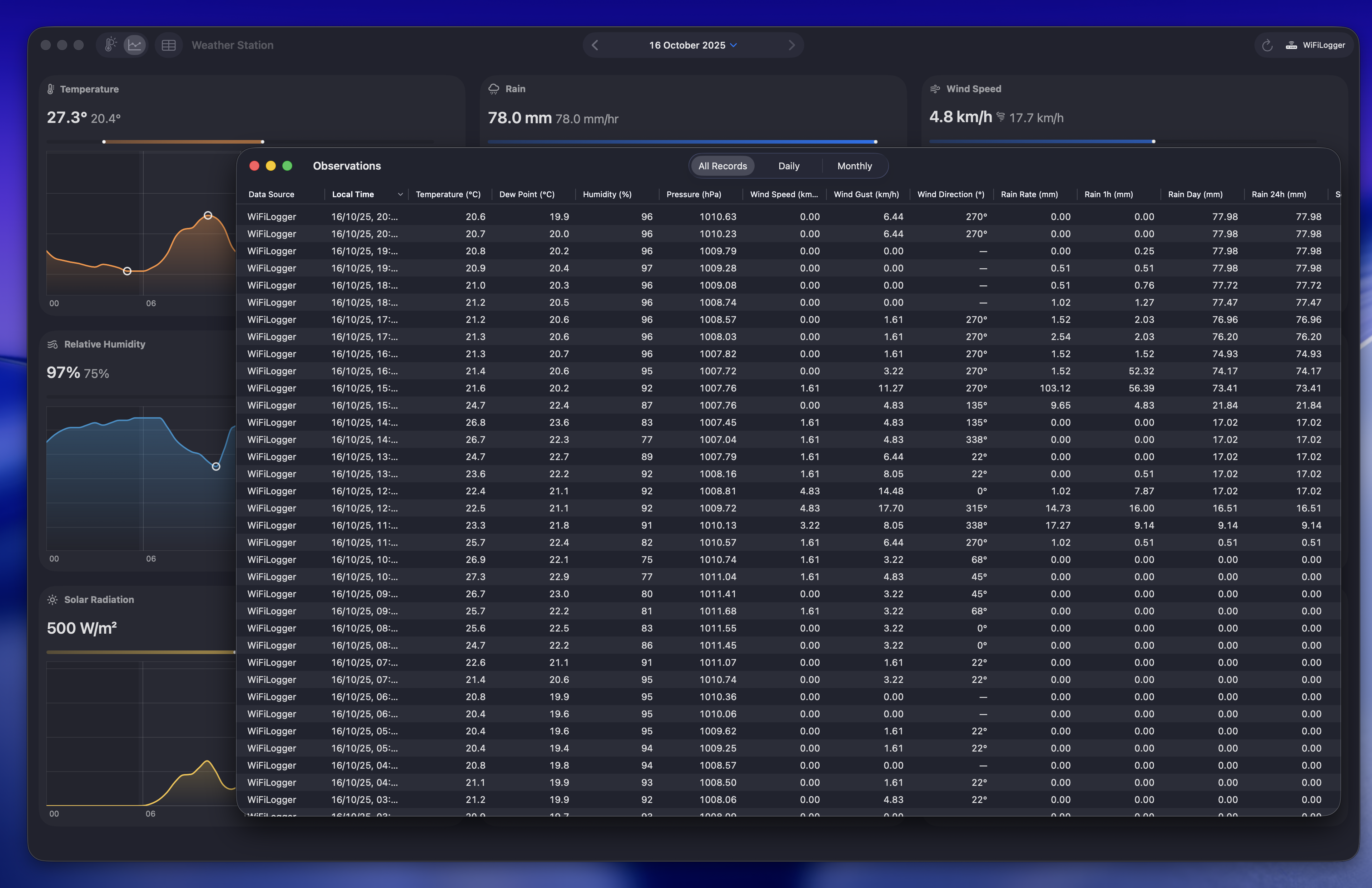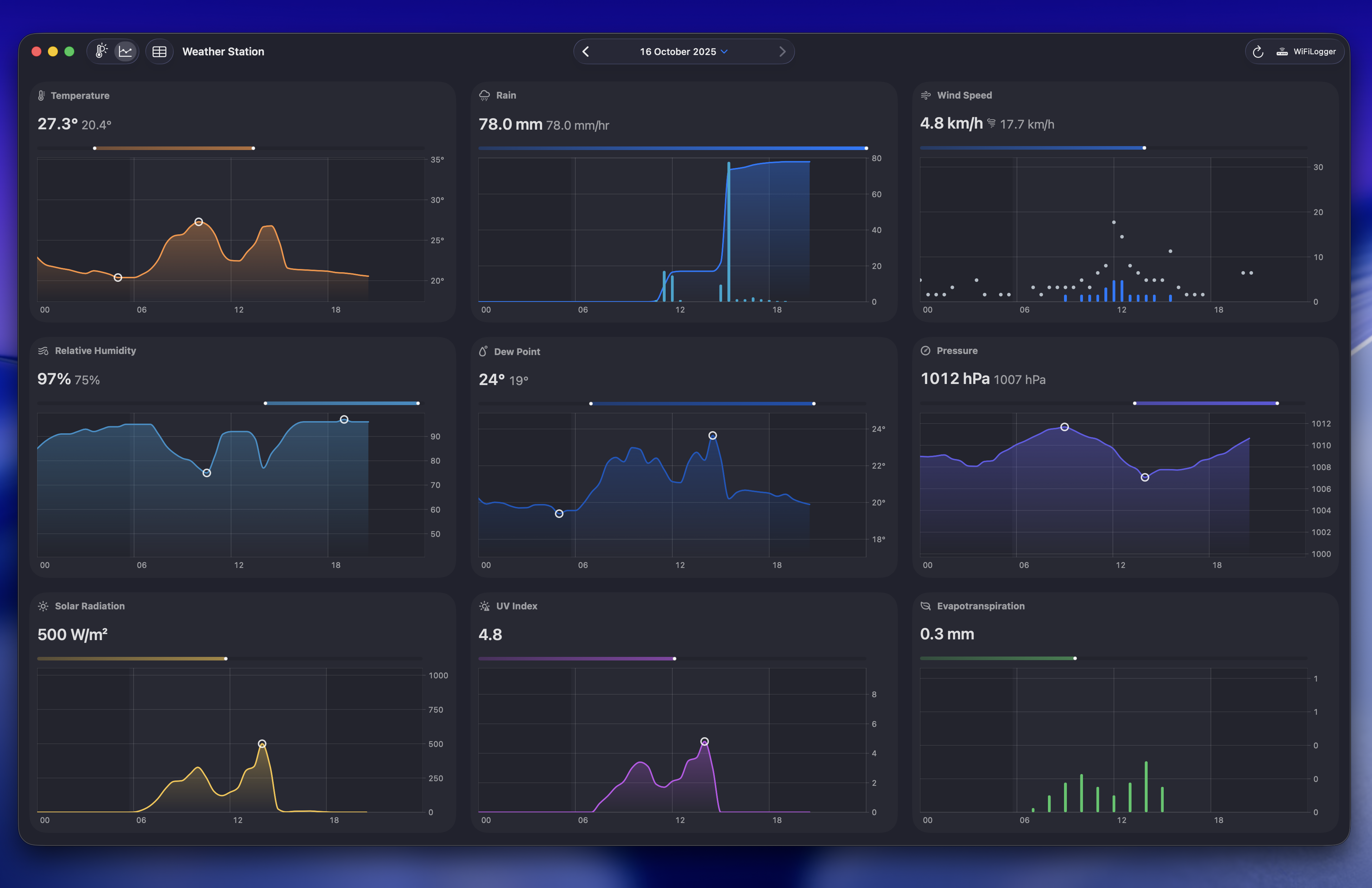 Weather Fusion is an app for iPhone, iPad, and Mac to visualize weather data from personal weather stations, displaying live measurements and historical records - from your local network or online services.